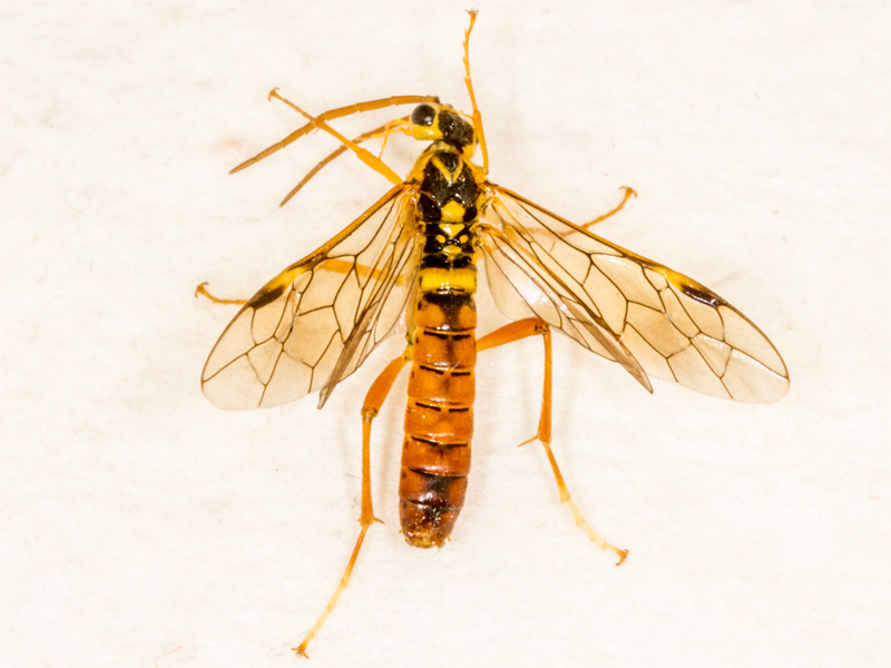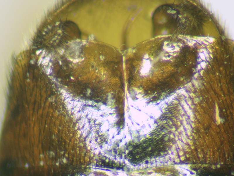 This was one of two similar sawflies observed flying around a Pedunculate Oak tree. The identification was complicated by different references taking different taxonomic positions - The RES key by Benson does not recognise Tenthredopsis scutellaris, Lacourt synonymises friesei with nassata but recognises scutellaris, while the British and Irish Sawflies website recognises all three as distinct. The genitalia appears to eliminate other species but as far as I can tell does not help differentiate between these three. Size appears to be relevant but the different references disagree, presumably in part due to their different taxonomic stances - this one had a forewing of 10.0mm which depending on which reference you're using could be good or bad for friesei! In the end I think three characters point to friesei: 1) the colouration of the thorax, 2) the middle segmemts of the hind tarsus are whitish (well, not really white but obviously paler orange than the rest of the tarsus and the rest of the legs) and 3) the keel along the midline of the eighth tergite only extends to about half way down the tergite.