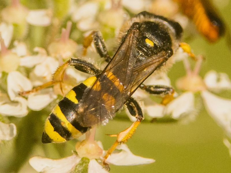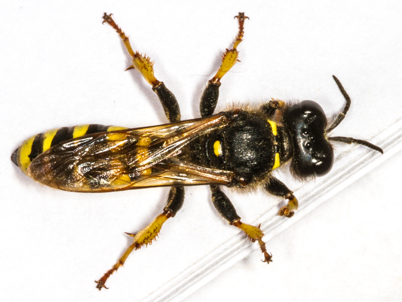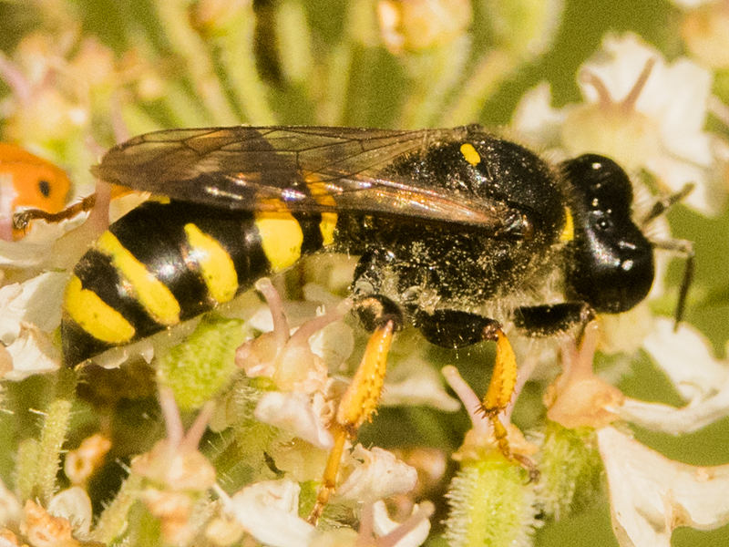 male Crabro cribrarius showing wings and propodeum, North Elmham Cathedral Meadows (Norfolk, UK), 9th July 2021