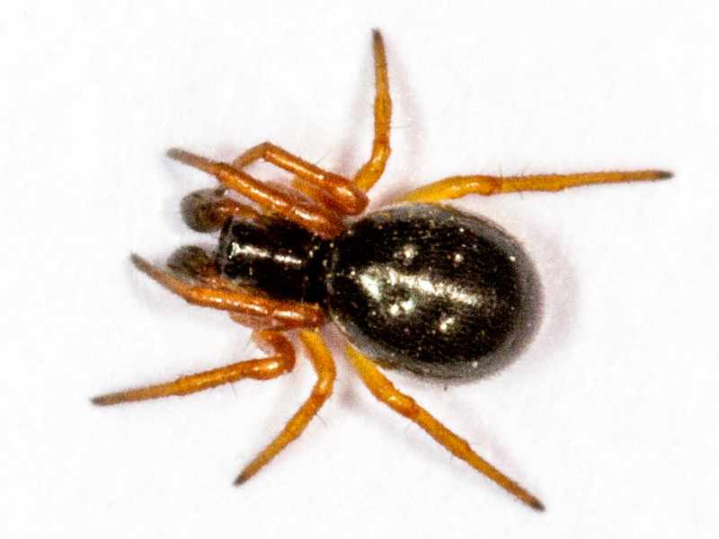Turning instead to the Collins guide and the chapter on Araneidae, I fairly quickly homed in on Hypsosinga pygmaea. That was interesting: while I was failing to get anywhere with Linyphiidae I resorted to running photos through ObsID. When it wasn't returning Diptera suggestions, one of the few spiders it did suggest (with low % probability) was Hypsosinga pygmaea. I'd looked it up and dismissed it as all the photos I found on an initial search showed bold pale stripes through the abdomen. The plate in Collins does too. Mine had no such stripes - the abdomen (and carapace) were uniformly black. But reading the text it became clear that some males do have entirely black abdomens. I'm not sure how frequent it is - I guess it's the minority given the paucity of photos of such individuals online.