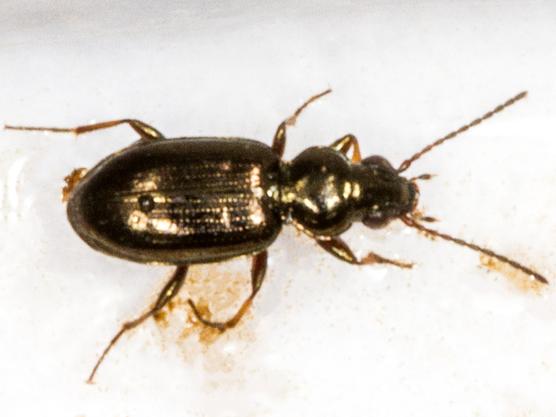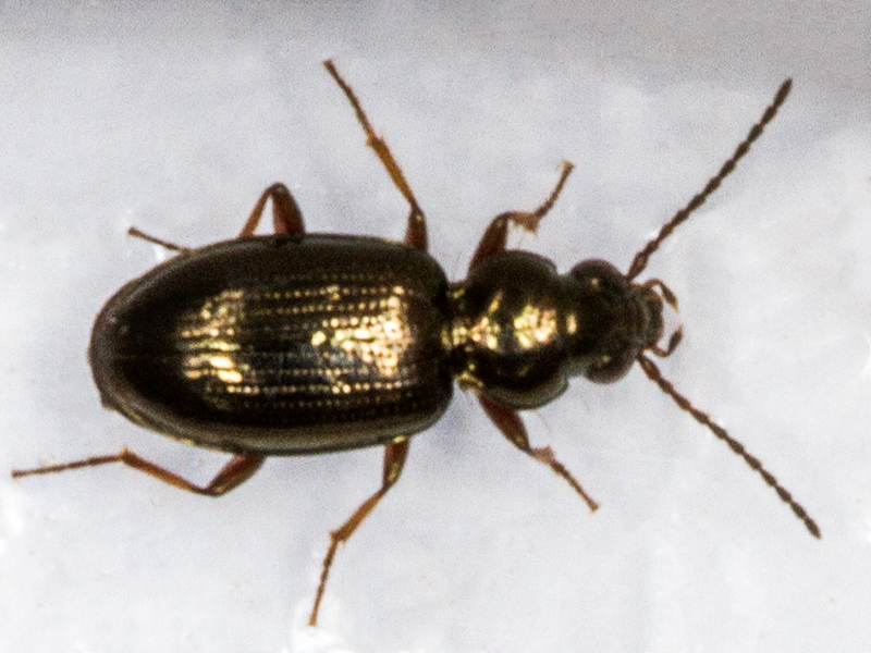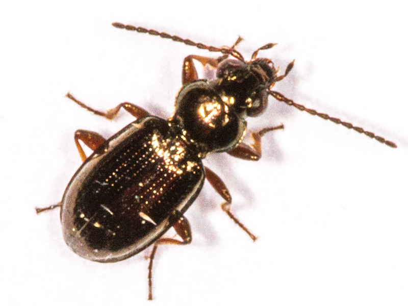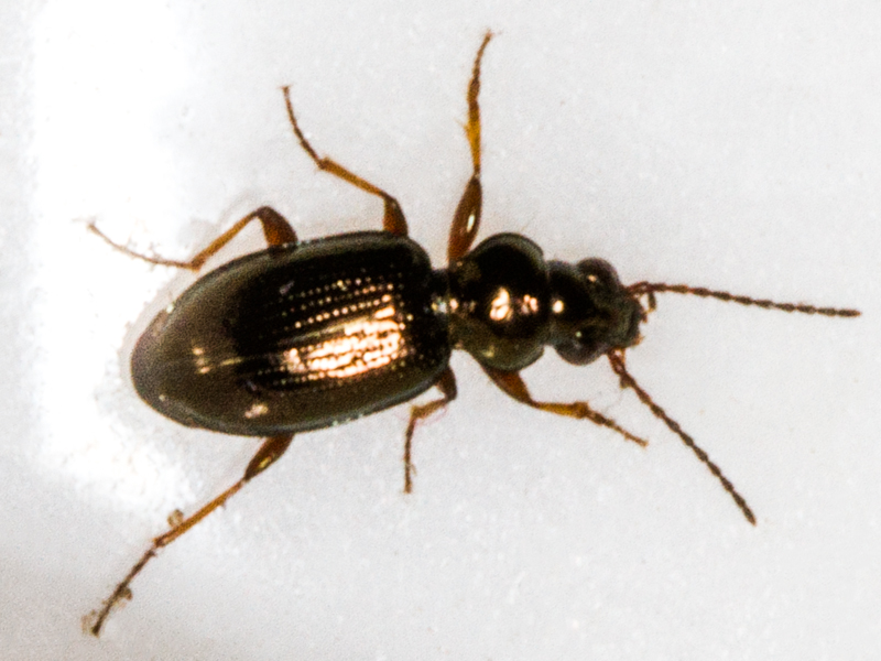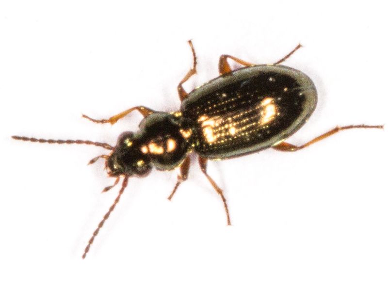 Both Bembidion properans and the similar Bembidion lampros are common but I have found their separation really tricky. I was perhaps slightly thrown by finding mostly properans despite knowing that lampros was supposed to be the commoner species (in retrospect I wonder if lampros is indeed the commoner species but properans is more prone to coming to light, the means by which I mostly find them). Some were clearly properans while others were less convincing, and it wasn't until I had the opportunity to study some lampros specimens in a friend's collection that I felt comfortable calling them all properans. I had previously identified lampros, but after examining a range of specimens in detail I decided that my earlier lampros identifications were not safe (though at least some of them may well have been correct).