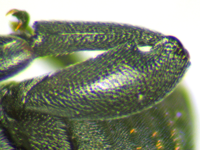 Bruchus loti showing pronotum, hind femur and hind tibial spines, North Elmham Cathedral Meadows (Norfolk, UK), 3rd June 2022