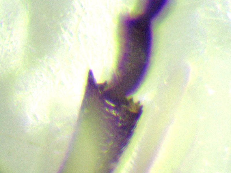 This was spotted on an Ox-eye Daisy and potted, but back then in 2022 I mistook it for a weevil. When I came across the specimen again in 2026, as I was working through my Curculionidae specimens, I immediately recognised it as Bruchinae, although a species that I was not familiar with. I keyed it using Duff. I found it difficult to see the smaller apicoventral tooth on the hind tibia or at least differentiate it from the other spines or denticles, but as there was clearly a single tooth that was longer than anything else it didn't really matter if I was seeing the smaller ones correctly or not.