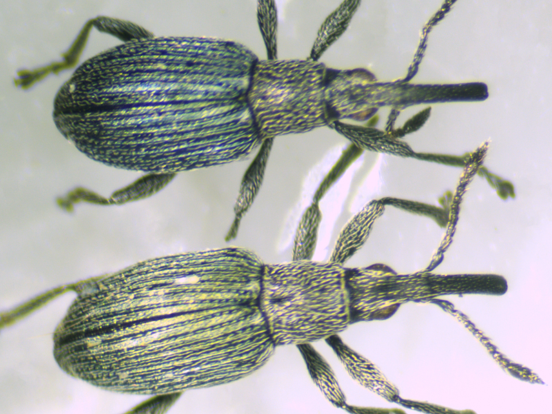 To give more of an idea of how green the elytra were, here is the same beetle together with a much bluer Ceratapion onopordi.