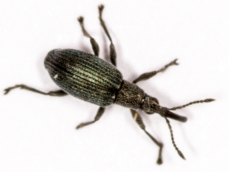 Now rather confused, I turned to another Ceratapion from 2025 that was also waiting to be identified. This one had a clearly different frons pattern, the ridges being much finer and more parallel. The punctures on the pronotum were far shallower - rather hard to see at all. The differences between 2025 and 2022 individuals was vastly greater than the difference between the 2025 indidvidual and the onopordi shown above, and this reassured me that onopordi must be the correct identification for the 2022 individual. I had hoped to confirm this genitalically, but on dissection it proved to be a female. It was fully-winged (although Duff says that both onopordi and armatum have fully-winged and short-winged forms, it omits to say whether carduorum and gibbirostre have either or both).