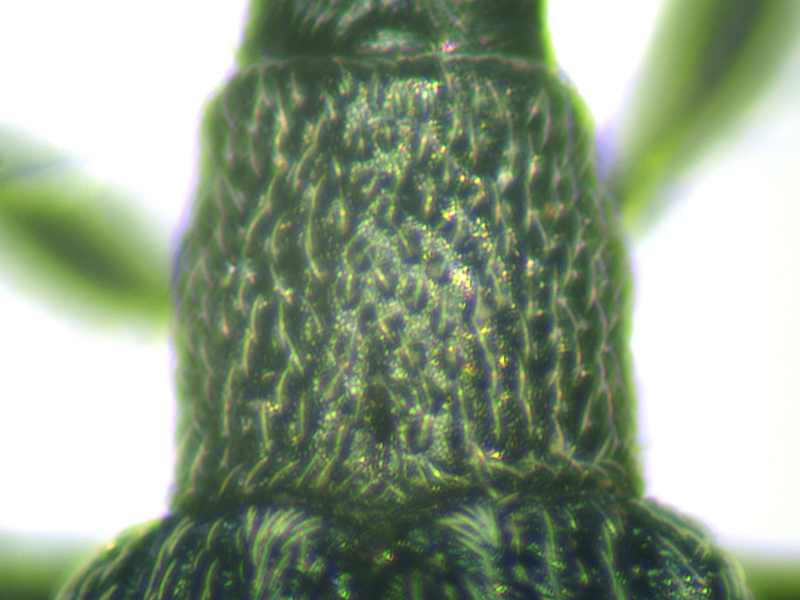 Ceratapion onopordi showing close-ups of base of elytra, humerus, antenna, pronotum and frons with base of rostrum, Wendling Beck Environment Project (Norfolk, UK), 25th August 2025