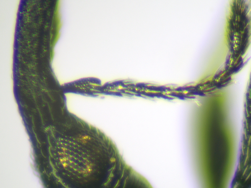 Ceratapion onopordi showing close-ups of pronotum and base of elytra, antenna, and rostrum and frons, Wendling Beck Environment Project (Norfolk, UK), 21st July 2023