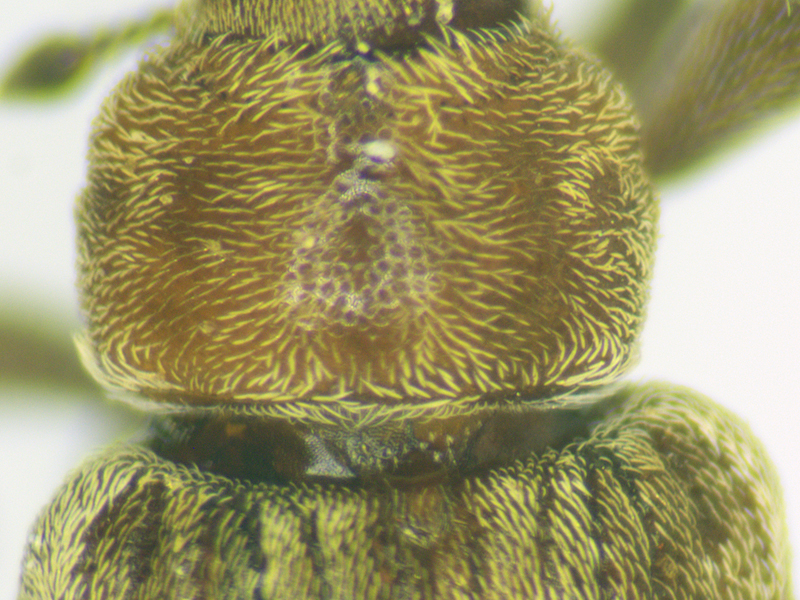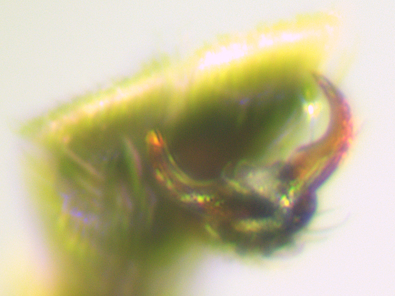 female Dorytomus tortrix showing tarsal claw, prosternum, side of head, elytra, base of rostrum, side of prosternum, pronotum, fore tibia, rostrum and spermatheca, Bintry Mill (Norfolk, UK), 17th May 2023