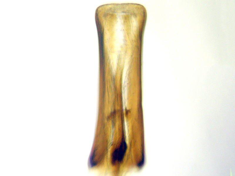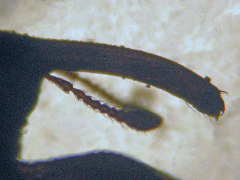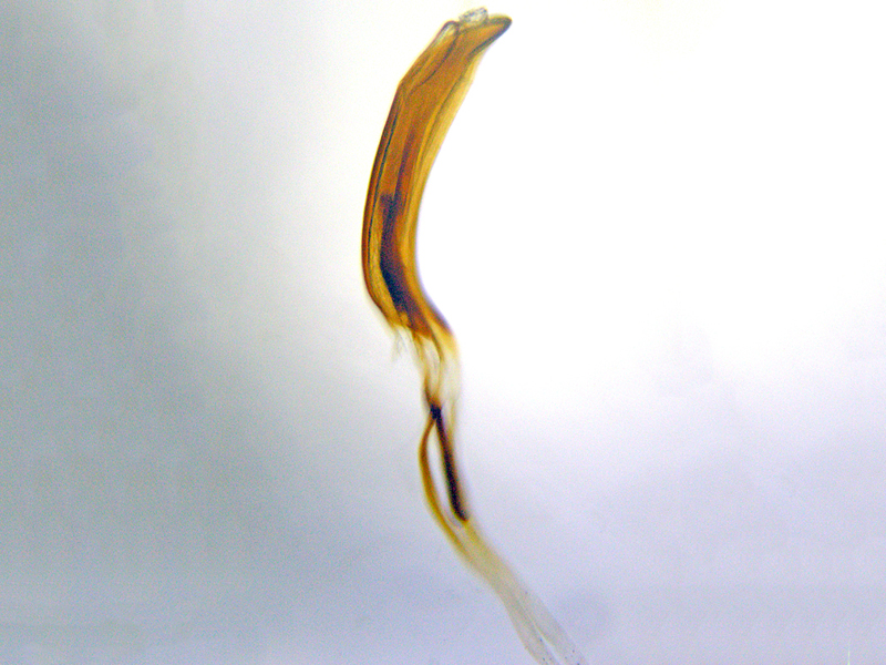 I found this on me as I was driving away having just been under, and parked under, some poplars. I used Duff to identify it, hitting a snag when keying it to genus. The tarsal claws were expanded towards the base and then narrowed just before the base. I would therefore have described the claw as toothed or appendiculate, but I had to key it as simple to get to Dorytomus. Keying it to species seemed fairly straightforward but it was a little more patterned on the elytra than I had expected for this species. I decided to dissect it to see if it had male genitalia which I could have compared to the photos at the Beetles of Europe website, but it proved to be a female. Having said that the spermatheca might be useful as it differs from that of a Dorytomus longimanus I examined at the same time, but I have no references that describe or illustrate this or most other Dorytomus spermathecae. The beetle was 5.1mm long.