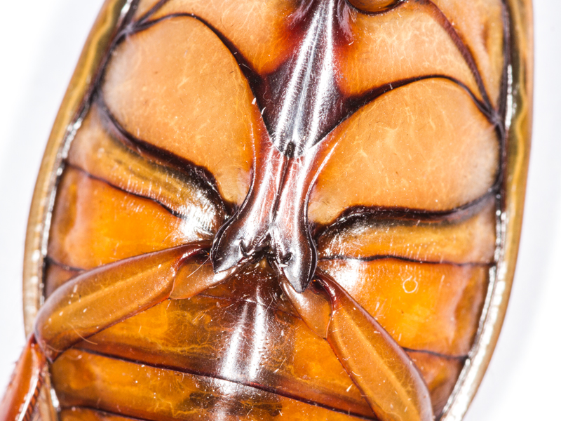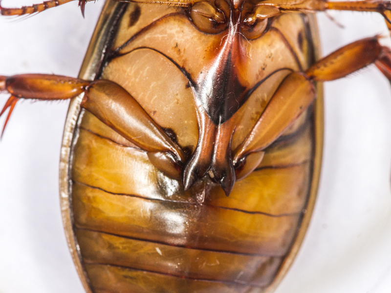 male Great Diving Beetle Dytiscus marginalis showing hind coxal processes, North Elmham (Norfolk, UK), 14th April 2022
