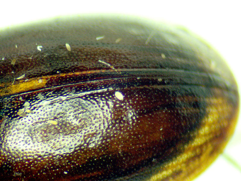 This came to light a couple of fields away from the one above. Although I suspected it was Enochrus I keyed it to make sure, but as the apical maxillary palpomere was longer than the subapical one, it keyed to Hydrobius. That was clearly incorrect, and as the apical palpomere was only very slightly longer than the subapical one I tried the alternative option and that led to Enochrus as expected. It was the same character that then firmly placed it at melanocephalus, the other Enochrus all having shorter apical palpomeres.