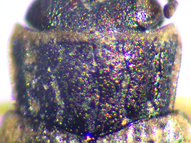 My next proved quite tricky and, being a female, the genitalia were no help. One apical maxillary palpomere looked more symmetrical like on brevipalpis but the other was clearly asymmetrical as on minutus etc. I wassn't convinced that the pronotum shape wasn't better for griseus than minutus, but in the end I think it must have been minutus. This one had a clearer yellow front and side border to the pronotum than the one above and, unlike most griseus, the marginal grooves of the pronotum were not blackened. Looking at the specimen, the contrast between the pale elytra and dark pronotum was as shown in the third photo below, not the two live photos where the elytra seem to be darker.