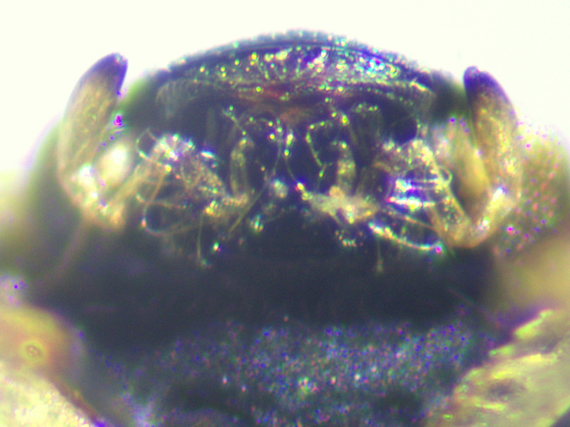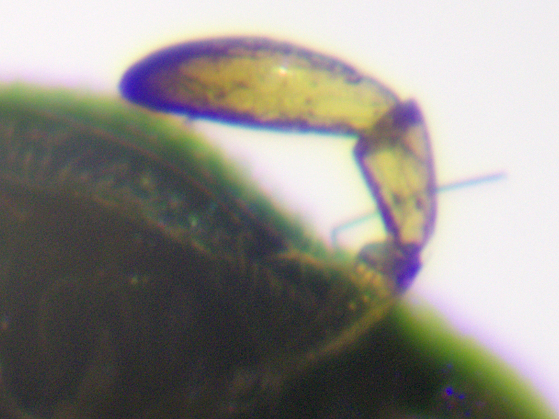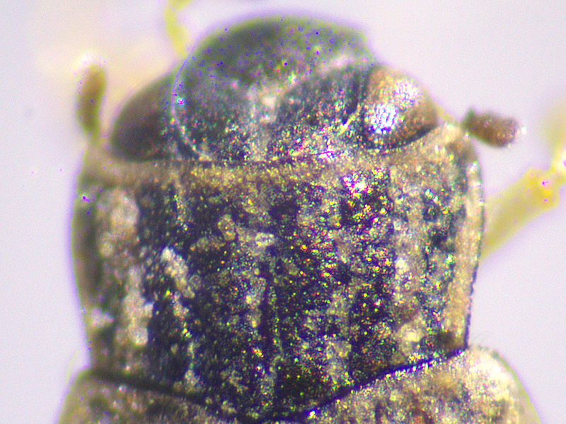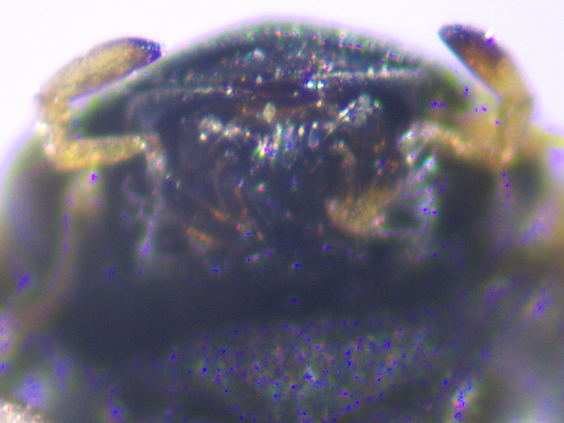 female Helophorus minutus showing pronotum, head, antenna and maxillary palps, Wendling Beck Project (Norfolk, UK), 26th August 2024