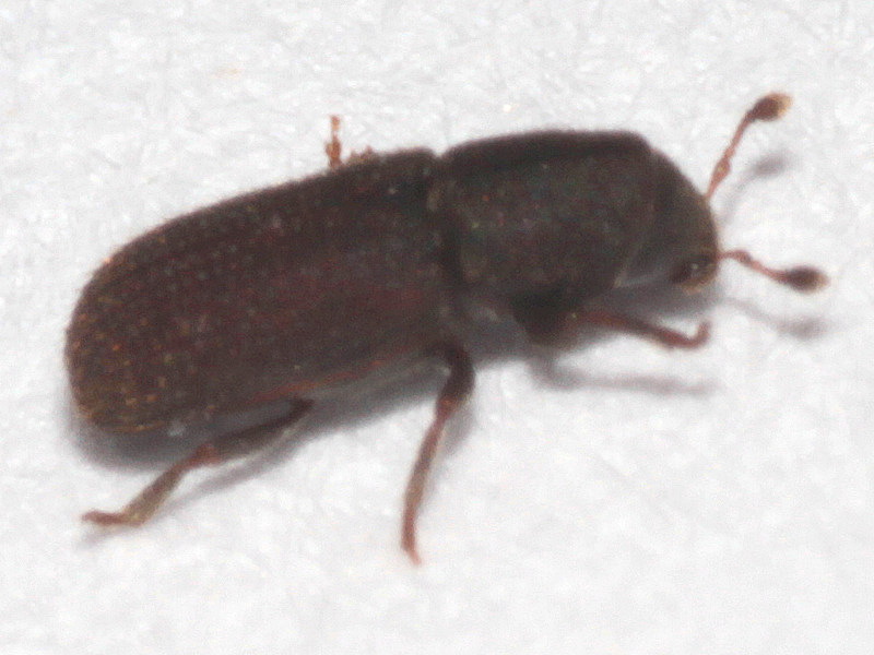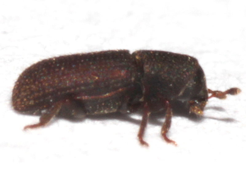 This was found on my net after I'd done some sweeping. I'm not sure now which resources I used to identify it, but somehow I identified it as Hylurgops palliatus. I no longer have the specimen, but looking back at the photos and comparing it to photos of that species, I'm sure I was mistaken. I think it looks better for Hylastes, probably Hylastes ater, but as there are several similar species of Hylastes I suspect it's not safe to record it as such.