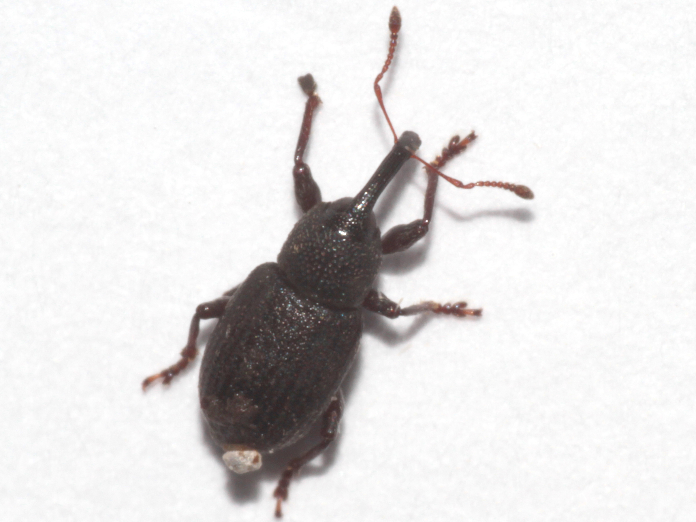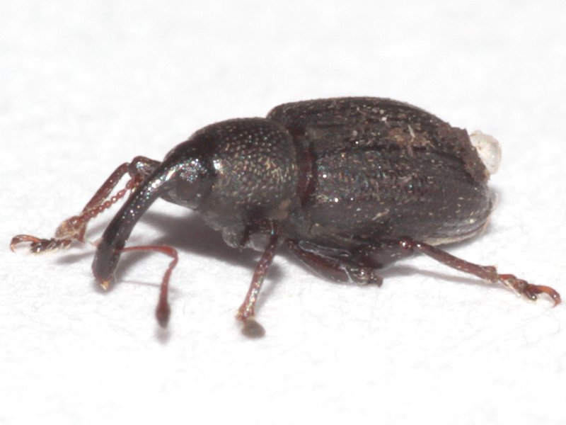 When I found this in my garden moth trap I didn't have a key to confirm the ID but, presumably by picture-matching, I did arrive at this species. I retained the weevil so that I could check the ID when I got a key and eventually got round to doing so using both the Duff and Hackston keys in 2026. The only slight issue was that I couldn't make out a scale tuft two thirds from base on elytral interval 3, but it wasn't in great shape, rather muddy and I suspect a bit worn, so I'm not too worried about this as everything else seems to fit. It was only about 3.5mm long so near the bottom end of the size range of this the smallest beetle in its genus.