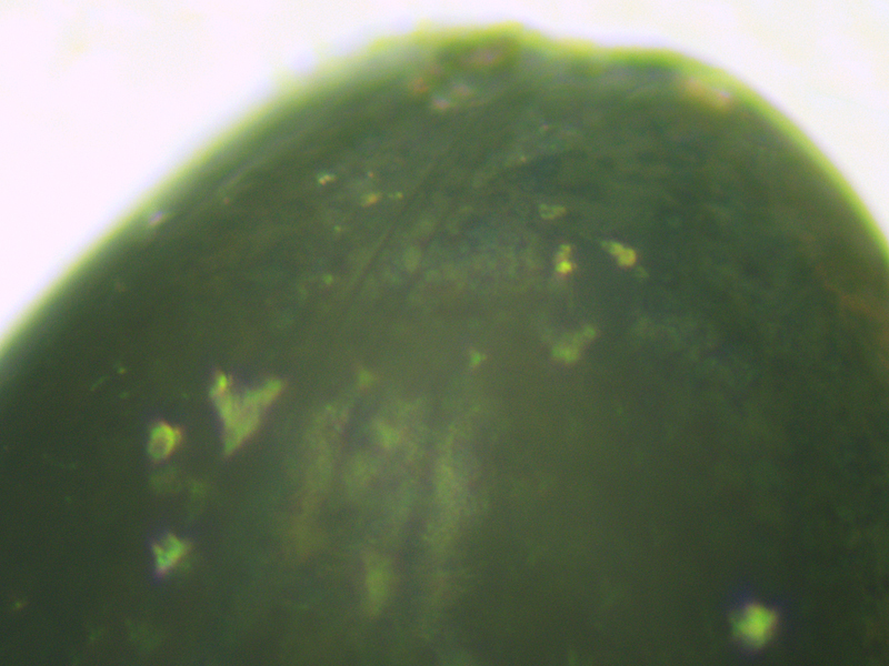 These were found together by suction at a site where I've regularly light-trapped over the last couple of years so I'm guessing this species may be more reluctant to come to light than some of the other Olibrus. It was obviously blacker than the Olibrus I'm more familiar with, and the way the sutural striae failed to converge towards the apex was another difference. They were just over 2mm long.