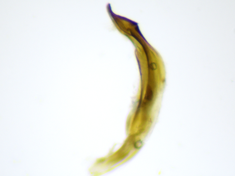 female Olibrus aeneus showing elytral apices and gonocoxa, Wendling Beck Environment Project, 4th March 2025