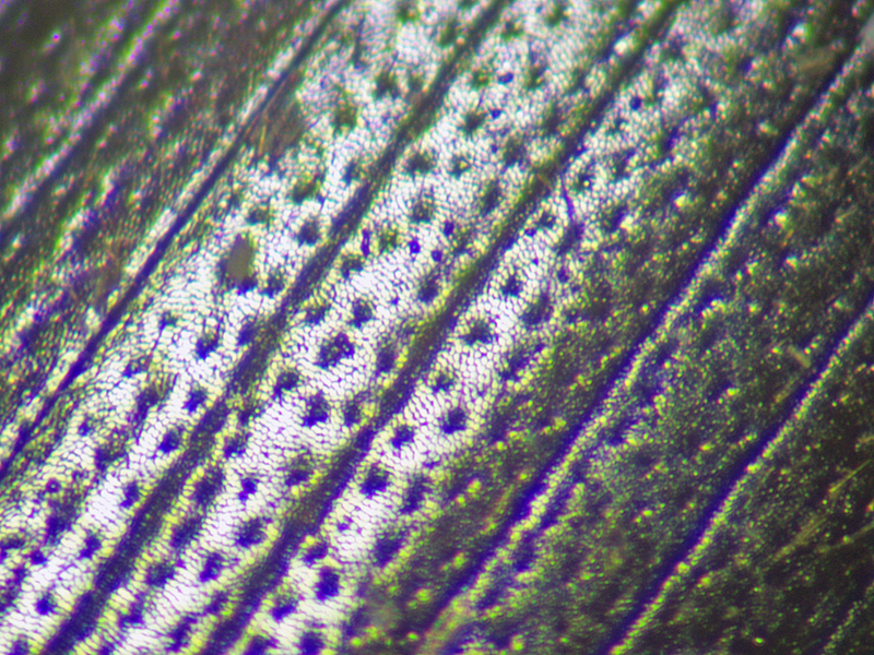 On this one there are large gaps between the punctures on the pronotal disc, clearly more sparsely punctured than on the margins. There are one or two places where there are four punctures across the innermost interval, but in these places the punctures aren't in anything like a straight line so it's questionable whether you could describe it as a row of four punctures. Where they are arranged in anything like rows they are only 3 deep.
