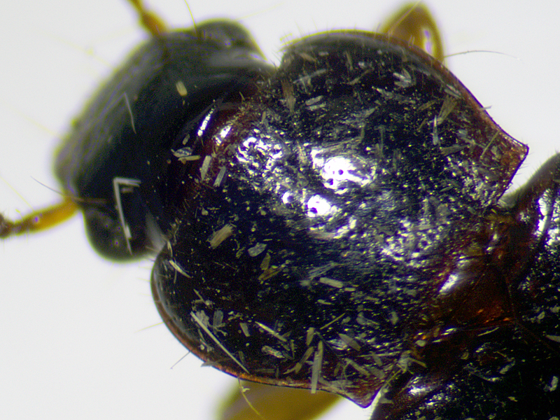 I examined at the same time as the last one. The four bristles on the side of the pronotum were clearly different from the puncticeps I examined with them, and the contrast between the blacker elytra and redder head and thorax was very apparent.