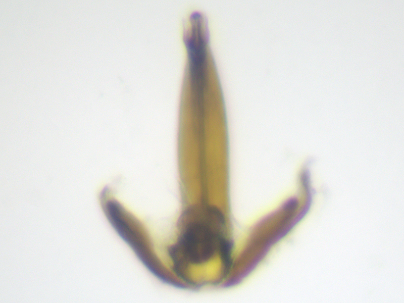 These two were a mating pair. I find getting an accurate measurement of the elytra length and width and especially overall beetle length quite difficult, and perhaps as a result not all of the ratios matched melanopus. I think measuring the 5th antenna segment is perhaps safer - the proportions certainly clearly pointed to melanopus on both of these anyway and the genitalia confirmed. The male is shown first with its genitalia and then the female. The first genitalia photo is the intact aedaegus which, so far as I know, is not useful for ID - you have to open this up to extract the internal sac flagellum.