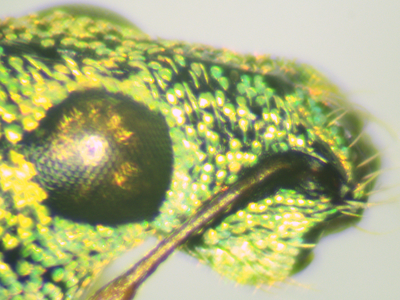 This was swept from a Walnut tree. I keyed it using Duff. Note that the live photos below have come out looking more yellowy-bronze and less green than it looked in life (or in the photos taken through the microscope).