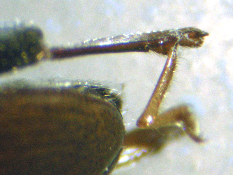 female Cabbage-stem Flea Beetle Psylliodes chrysocephala showing hind tibia and spermatheca, Broom Green to Ryburgh Road, North Elmham (Norfolk, UK), 9th October 2021