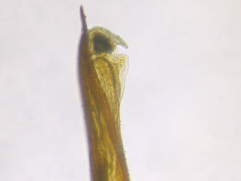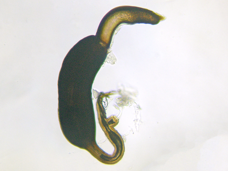 female Cabbage-stem Flea Beetle Psylliodes chrysocephala showing spermatheca, North Elmham (Norfolk, UK), 28th May 2020