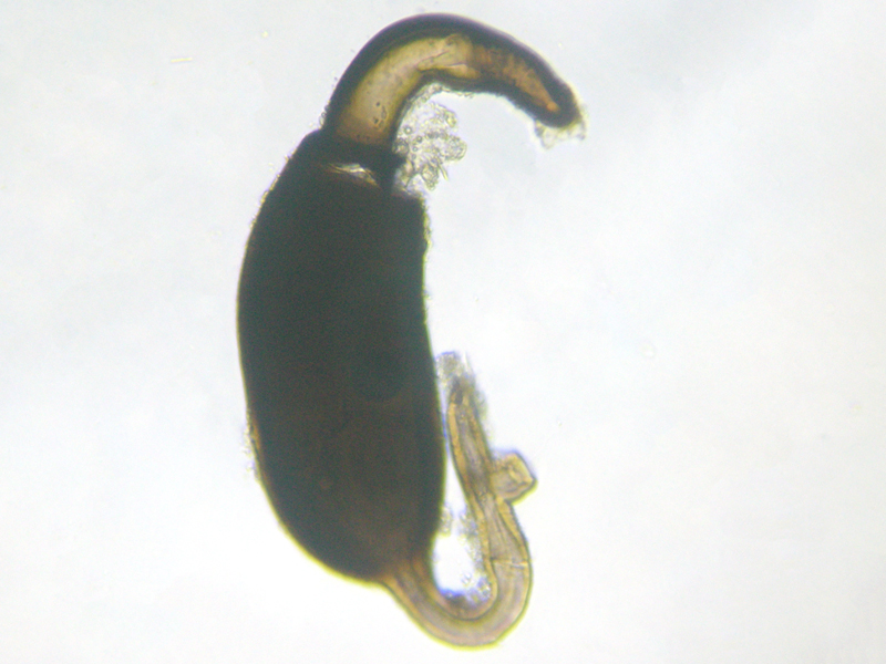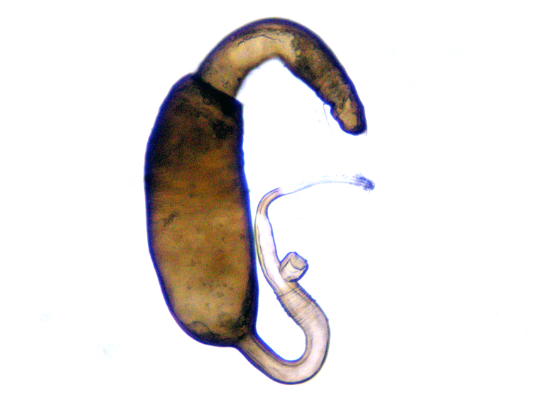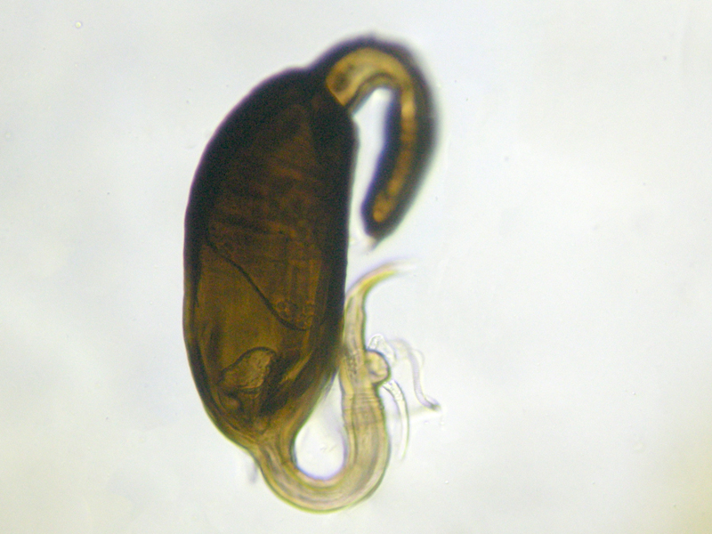 female Cabbage-stem Flea Beetle Psylliodes chrysocephala showing spermatheca, North Elmham Cathedral Meadows (Norfolk, UK), 27th August 2021