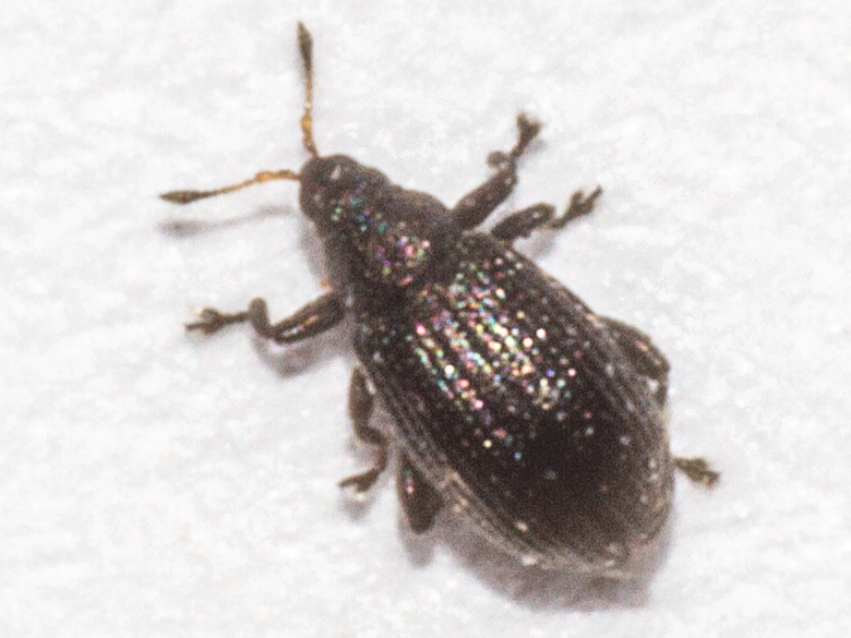 During a Norfolk Moth Survey leaf-mining day in October 2018 I was shown leaf-mines of the micro-moth Goat Willow Leaf-miner Phyllonorycter dubitella. This is a scarcely recorded moth and I had not - and at the time of writing still have not - seen the adult, so I took a number of leaves home that had mines in the hope of rearing one through. This I failed to achieve, however in the spring when I brought the leaves in from outside a tiny (1.6mm) beetle emerged. I subsequently identified this as Rhamphus pulicarius, a species known to mine various tree and shrub species including willows. I had not noticed the Rhamphus mine on the leaves, so did not photograph it (I think I can probably see it on one or two of my photos of the Phyllonorycter mines, but it's out of focus and partly out of the shot).