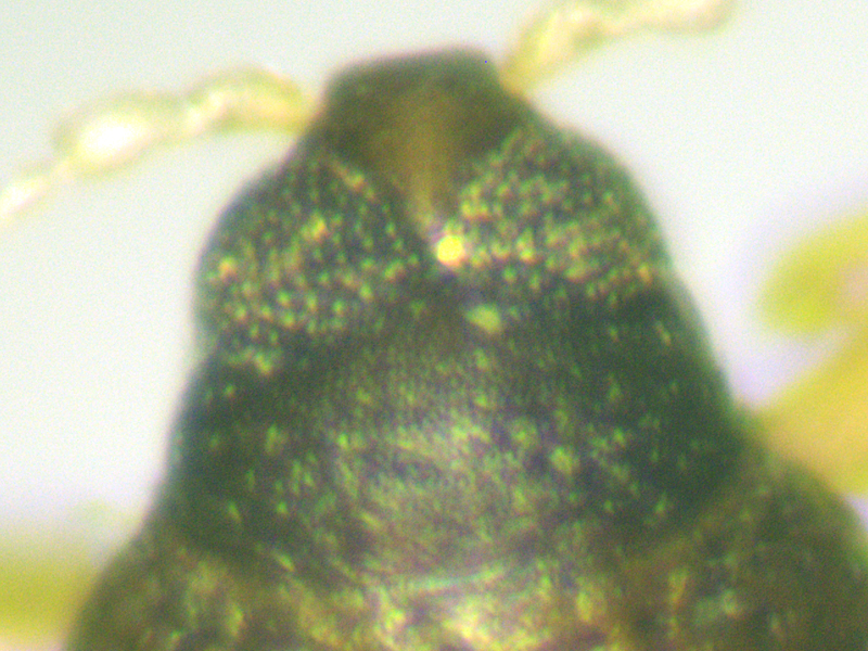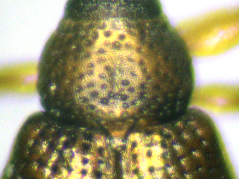 female Rhamphus pulicarius showing faded vertex, pronotum, elytron and spermatheca, 14th April 2019, ex mine collected Lynford (Norfolk, UK), 13th October 2018