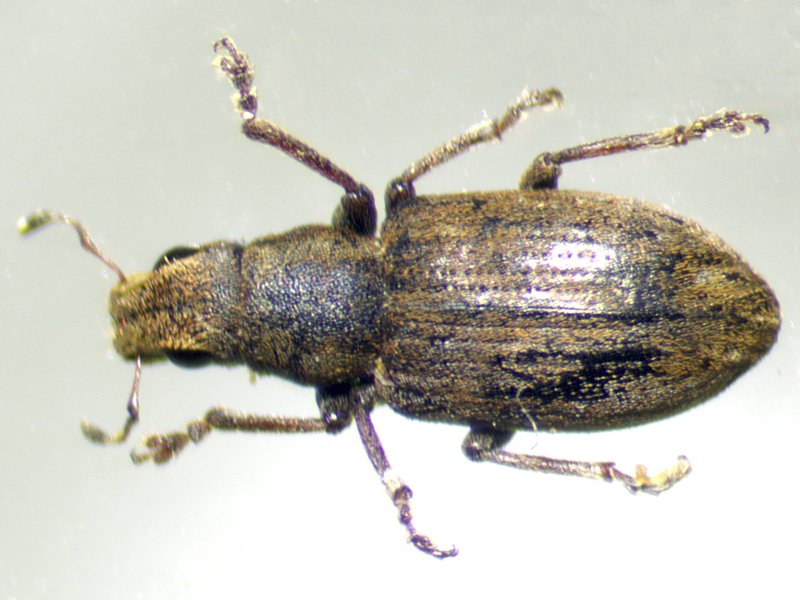 Although similar to lineatus, the gap between the fore coxae and the constriction near the foremargin of the prosternum was too great for this species - the gap was a similar size to the gap between the rear margin of the coxae and the rear margin of the prosternum. However, I strugged to reach a satisfactory species ID using either the Duff or Hackston keys. Both keys led me to either obsoletus (as lepidus in Hackston) or cylindricollis, but in both cases the characters differentiating these two species did not appear to be exactly as described for either. The main difference appears to be in the shape of the elytral scales - much longer and narrower in obsoletus compared to short and round in cylindricollis. In practice, before measuring the scales on close-up photos, I didn't find this easy to judge - a few scales were clearly long and thin but many were much less obviously so. Duff also provides an additional character whereby on obsoletus the second striae diverge away from the suture near the apex, so that the second intervals broaden - however he writes that this can be hard to see due to covering scales, and I can vouch for that!