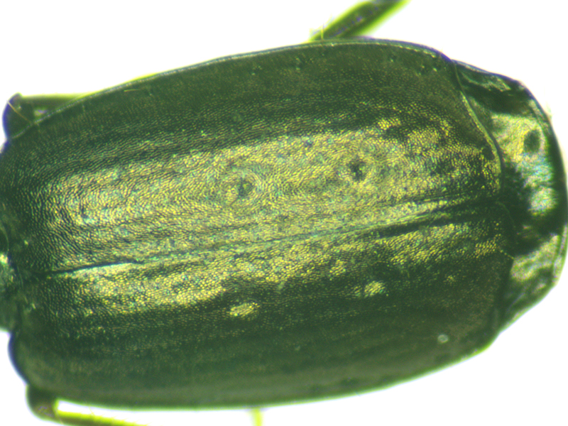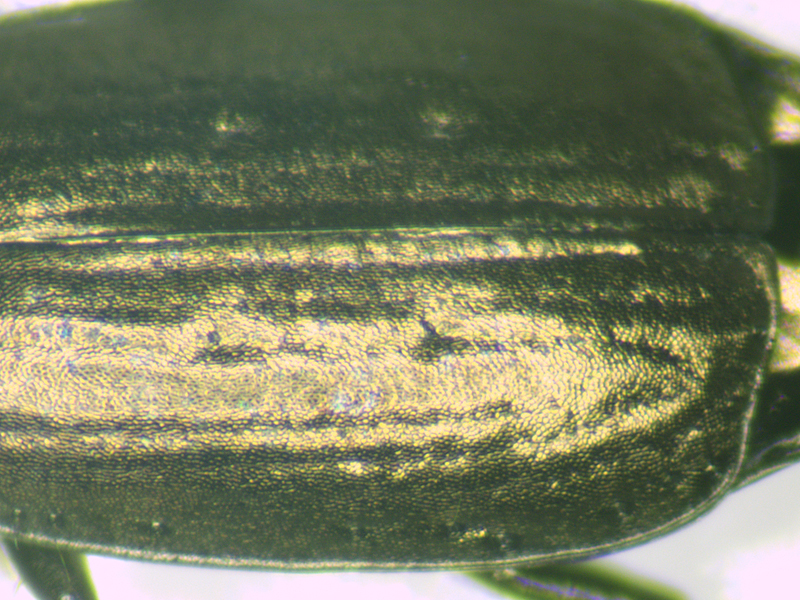 The next five were caught together by suction sampling at the same place as the ones above. The ID was straightforward until I got to the last one and it was blue! Under the microscope there was a very obvious metallic slightly irridescent blue sheen over much (not all) of the elytra. At first I thought the dorsal punctures were less foveate but on closer insepction they were clearly foveate, and I couldn't make out any differences in the microsculpture or bare parts colouration to suggest that it was anything other than foveatus. There is no suggestion of the blue colour in the photo taken of it alive. The blue one is shown first in the sets of photos below, and again together with the other four after the others.