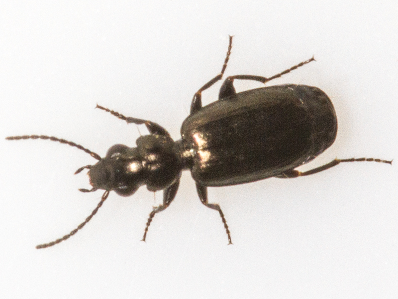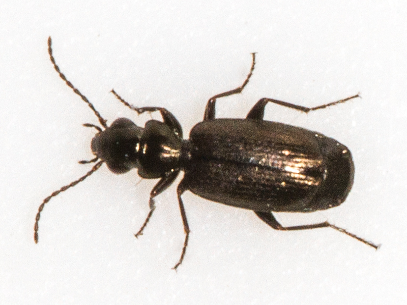 Apparently a very common species. This one was found in a pitfall trap. I initially keyed it using Hackston as I've used his key to Carabidae genera so much I find it really quick and easy. Having said that, I did have one or two minor issues so checked using Duff. One related to whether or not there was a waist between the pronotum and elytra. I'd argue there was a clear constriction upon which the scutellum was (mostly) situated, but also this scutellum did extend back so that its tip was between the bases of the elytra. So this couplet was a little ambiguous. Duff focuses solely on the position of the scutellum here without worrying about the presence or absence of a constriction, and so it is a little less ambiguous that the fact that the scutellum projected between the bases of the elytra was the critical feature here.