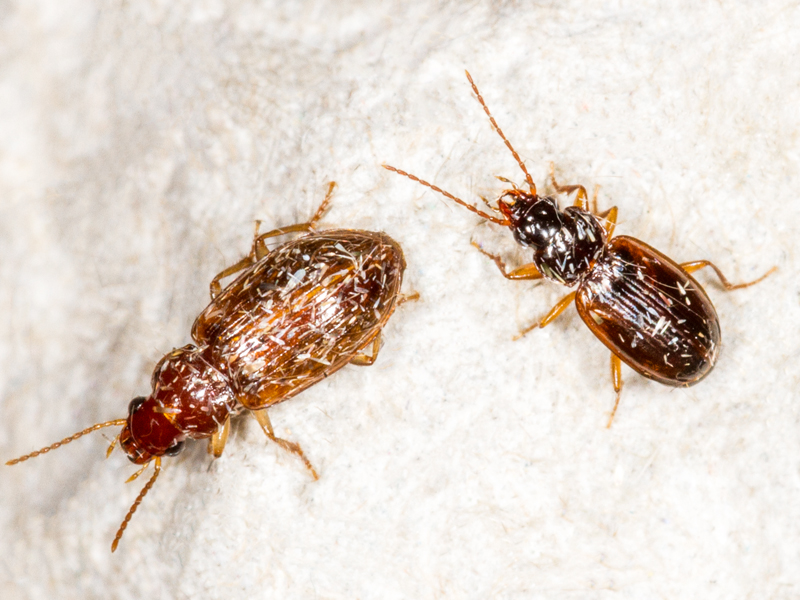 Trechus quadristriatus (right, with Bradycellus verbasci, left), North Elmham (Norfolk, UK), 13th August 2024