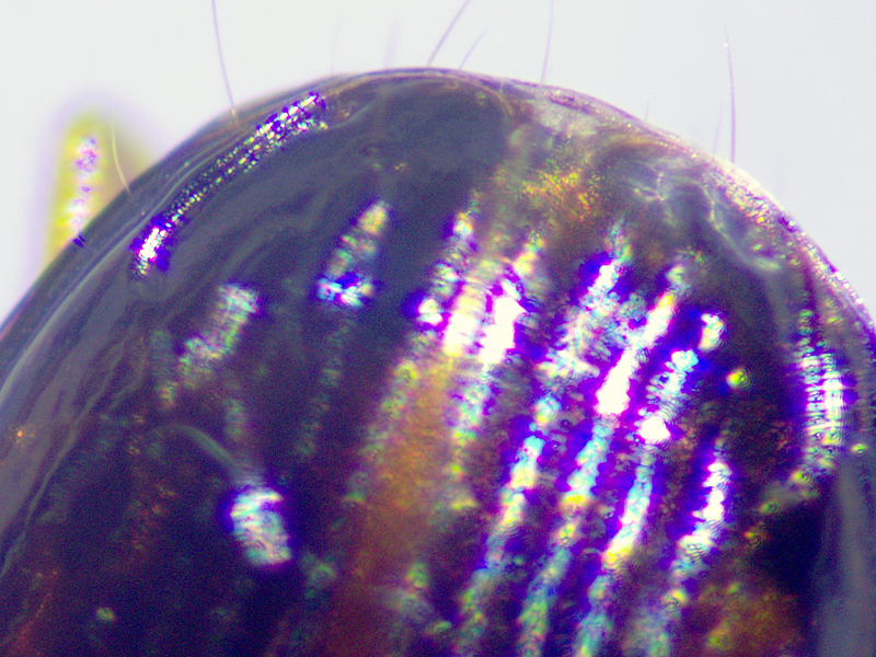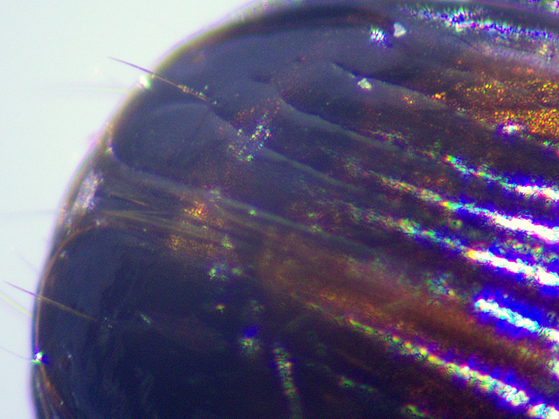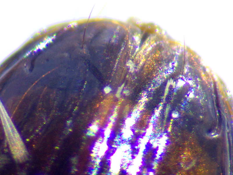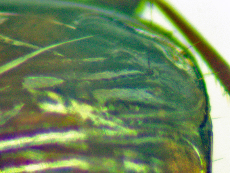 Having seen relatively few of these up to 2023, I was only marginally familiar with the species when I examined this one, the first in the bumber year of 2023. Having now examined nearly 60 I now find them easier, but I made a bit of a meal of this one. I found it easier to key using Duff than Hackston, having tried the latter first. I'd misinterpreted the pronotum shape at Hackston's couplet 3 as the hind angle was more obvious than in the diagram, although in hindsight the rest of the couplet probably should have led me the other way. Arriving at a pair of species that were too big (as well as unlikely in North Elmham) I realised my error. Duff differentiated on size early on which saved some of the headache, and I also found his diagrams at the start of the Trechus key helpful. One of the confusing things I found was that at some angles the second stria seems to end abruptly at a bristle after curving away from the suture (exactly as shown in Duff's diagram) but at other angles it can be seen that this stria continues to the recurved sutural stria (curving back towards the suture, or at least so that it's parallel to the suture again).