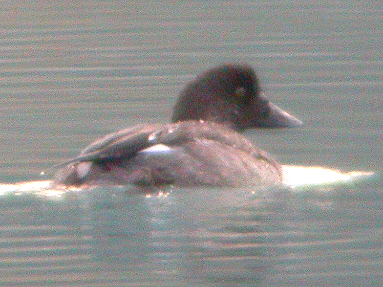 If I remember rightly, I identified the above birds at the time as Barrow's Goldeneyes based on the rather steep forehead and relatively short triangular bills. It has to be said that I have no other experience of Barrow's Goldeneye, and even Common Goldeneye with which I am familiar in winter, I have never seen in September. I recall being a little doubtful at the time as there seemed to be some variation in both head shape and bill shape among the birds seen, and evidently this confusion continued when I got home and reviewed my photos. I realised that the following photo appears to show a longer-billed individual and it seems that at some point I re-labelled it as [Commmon] Goldeneye. Looking back at it now I am not entirely convinced. Although perhaps not as steep on the forehead as the ones above, the crown seems rather flat. Was it a Common Goldeneye among a group of Barrow's Goldeneyes, or were they all Barrow's? I'd be happy to hear from you if you're more experienced with these than I am!