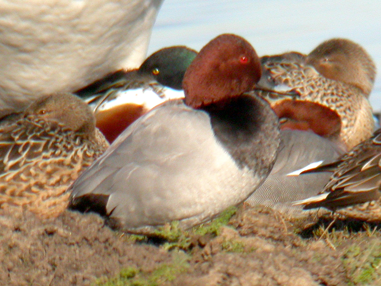 Common Pochards (with Northern Shovelers and Eurasian Wigeon), Cley (Norfolk, UK), 3rd February 2007
