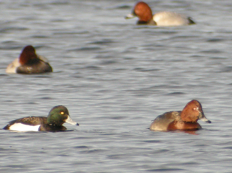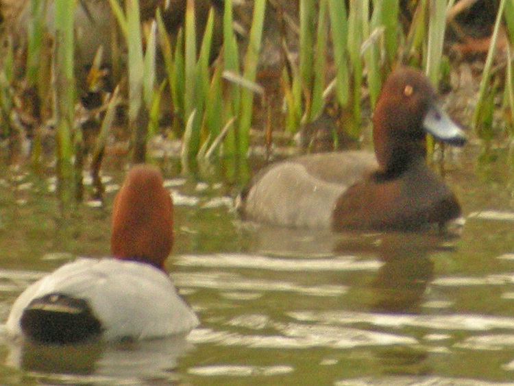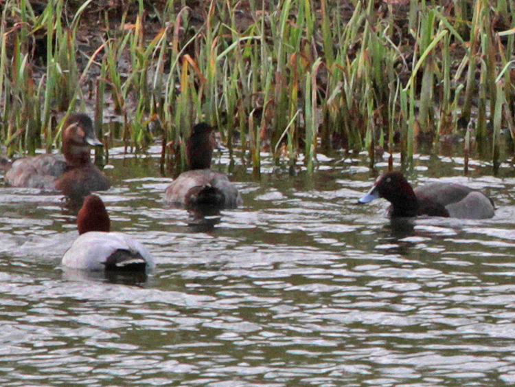 This Ferruginous Duck x Common Pochard hybrid turned up with a Ferruginous Duck, although the purity of that was not universally agreed. Below the hybrid is the rear bird in the first two photos and the right hand bird in the last two photos.