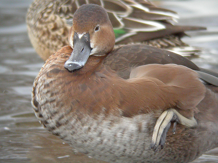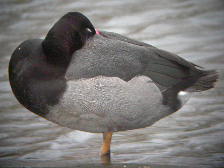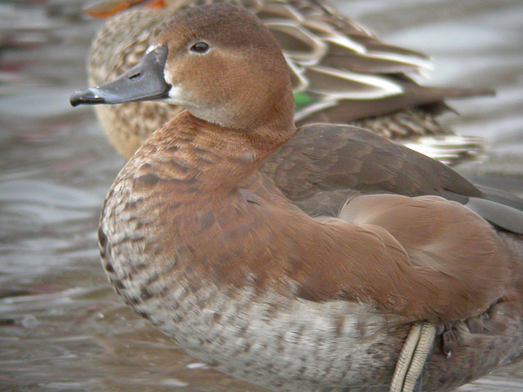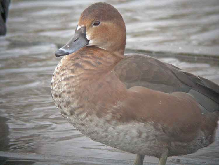 captive Rosy-billed Pochard x Common Pochard hybrid, Blakeney Quayside collection, UK), 18th January 2004
