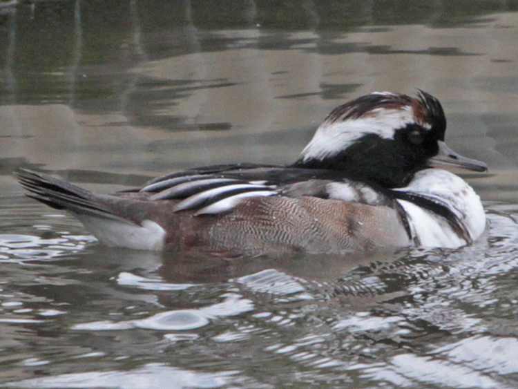 captive Smew x Hooded Merganser hybrid, Blakeney Quayside collection (Norfolk, UK), 13th February 2010