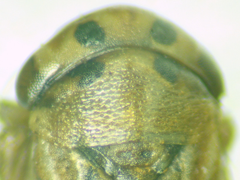 female Anaceratagallia ribauti showing close-up of vertex and pronotum, pronotum and scutellum, sternites, forewing and forewing cell texture, Wendling Beck Environment Project (Norfolk, UK), 11th August 2025