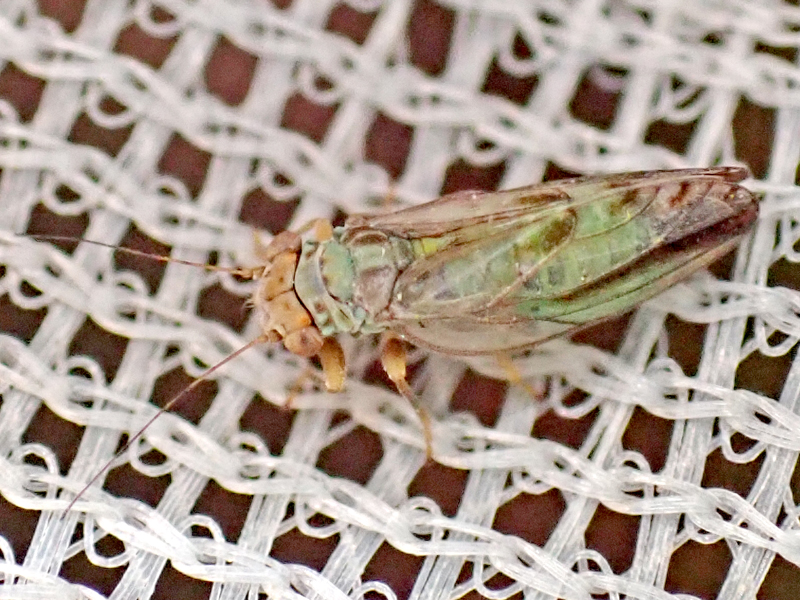 female Broom Psyllid Arytaina genistae showing forewing and abdomen, Langmere (Norfolk, UK), 7th February 2024