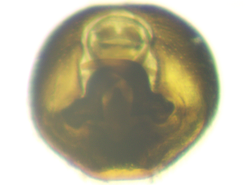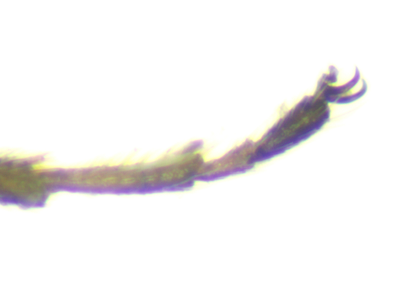 The second was more problematic. The structural differences from other species in the genus are less obvious in males, and it was much less hairy. In particular the hairs on the clavus, normally longer than the width of the clavus in this species, were sparse and very short. It didn't help that I had put it in a pre-used pot and it was smothered in moth scales, but the clavus hairs were undeniably short. I did wonder if it was worn, but attempted to key it as if it were one of the shorter-haired species. I soon hit a dead end and the shape of the aperture in the genital capsule didn't match any of the other species. That was closest to that of Nysius graminicola, a species that I had recently identified from exactly the same spot, but there were lots of other reasons to discount that as the ID. And although it was closest to that in that the top part of the aperture had someting resembling teeth, these were hardly tooth-shaped, being longer and more rounded than the relatively sharp teeth of graminicola.