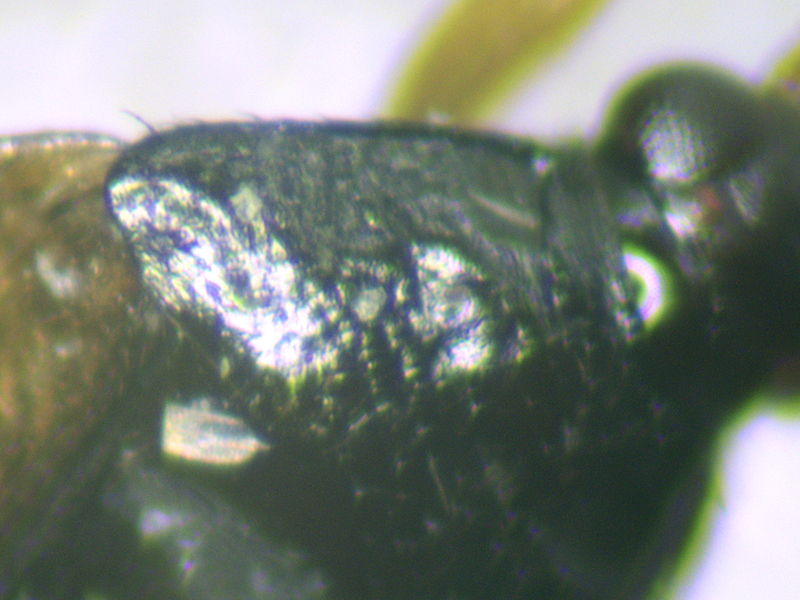 This was swept from Hemp Agrimony. I could only see a long hair at one corner of the pronotum but although they should have one at every corner (but they break off) I think just one counts. However it was a little way up the side from the very corner so I did wonder if it was the correct hair until I found Alan Cann's helpfully annotated images at NatureSpot which clearly point to the hair in the same position. That much puts it into the laevigatus or niger camp.