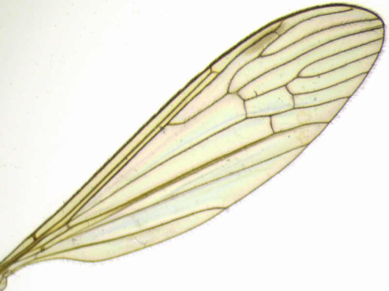 This came to light and was keyed using the Stubbs BENHS book. Having just keyed another member of the subfamily Limnophilinae and missed the tibial spurs I checked more carefully for them this time, but could not see any sign of them. I therefore started keying it as Chioneinae but soon reached a dead end. The text at the dead-end implied that the wing venation was more typical of Limnophilinae so I had another even closer look at the hind tibia, and still could not see any spurs. At this point I figured I might need to get a clear view of the genitalia so took the end of the abdomen off and put it in KOH to clean it up. I then began to key it as Limnophilinae and quickly came to Austrolimnophila ochracea, at which point I realised it would help to see the end of the abdomen before any pigment had been lost so rapidly extracted it from the KOH. I could just about see the dark band just in from the genitalia, and could also see the genitalia matched this species (as seen in photos online - neither of the books show the genitalia). I probably didn't need to worry anyway as the absence of an arcular vein between veins M and R appears to be diagnostic. For completeness I had once last look at the legs. I had previously examined one of the legs that had fallen off and I wasn't sure which it was, so now made sure I looked at a hind leg. The key implies the tibial spurs should be present on all legs, but it wouldn't be the first time I've seen a key assume I'm psychic and know to look at the hind legs only! Anyway, I could just make out one spur on this leg provided I held it at the right angle. The wing was 6.2mm long.