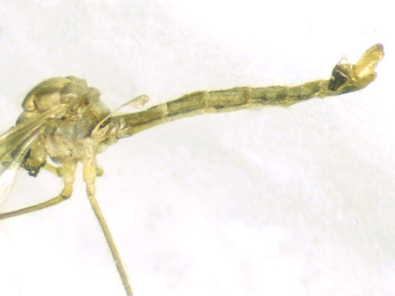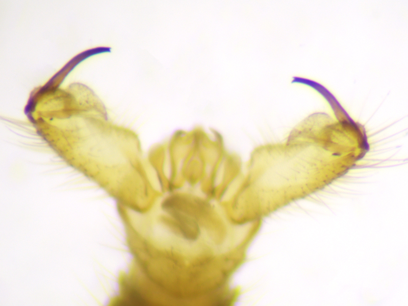 This was keyed using the Stubbs BENHS book. I forgot to check for tibial spines and erroneously jumped to subfamily Chioneinae where naturally I hit a dead end. I matched it to nemorale initially by comparing the genitalia to diagrams in the book, but then realising my error it keyed well enough once I used the subfamily Limnophilinae key. The key seemed to suggest that the anterior pits should have been darker and more obvious than they were. The wing was 6.0mm long.