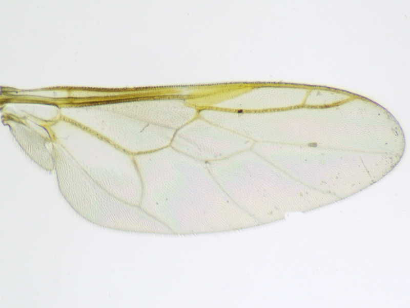 This was potted from the underside of a Bird Cherry leaf and was mainly identified by its pale femora (the hind femora have dark bases). The wing was 3.7mm long.