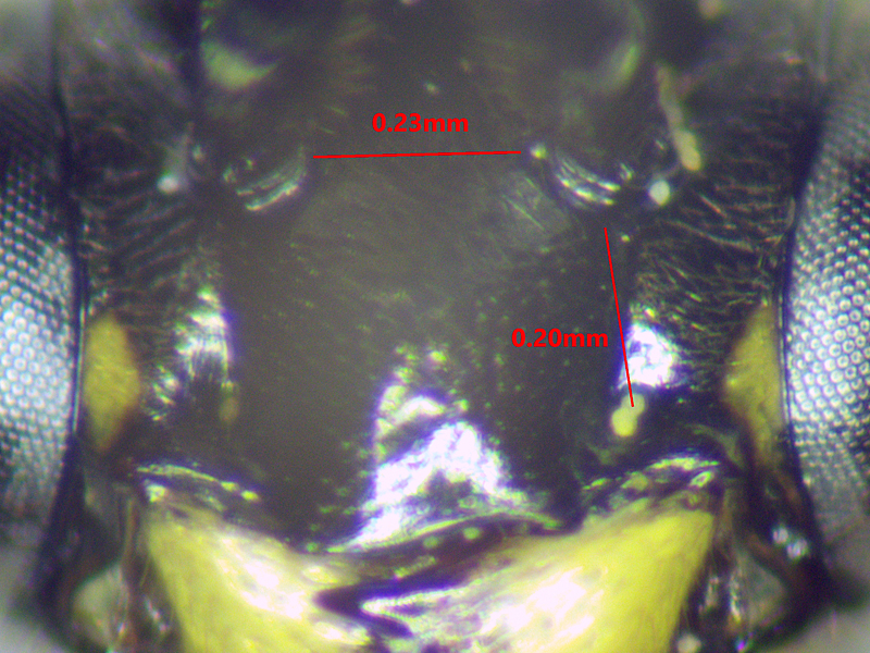 Wright's key to genera shows what looks like a fairly obvious triangular hair patch on the 8th sternite for Cephus, which I could not make out at all on the dry specimen. It also says there's an apical row of large flattened setae best as dark hairs in side view - I could see some large dark flattened setae but I wasn't sure these were forming an apical row. The width of the head as described in the RES key and Lacourt seemed to confirm that it was Cephus but again referred to detail on sternite 8 that I couldn't make out. In the end I resorted to clearing the abdomen in potassium hydroxide and once I'd done that and isolated sternite 8 I could make out the triangle of thick black hair scales. This seems to be a much harder character to see than is suggested in Wright. I don't think any of my references show the aedeagus for Cephidae so I don't know if there are significant differences between the species, but as I'd cleared it anyway I've shown photos below in case they might be relevant.
