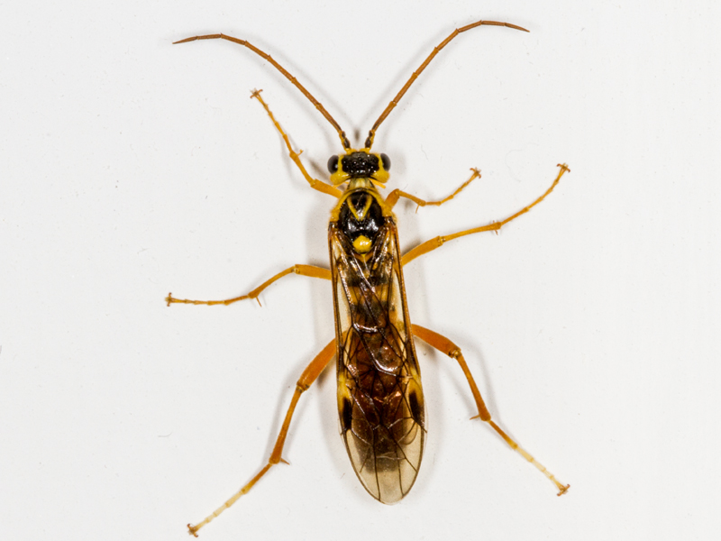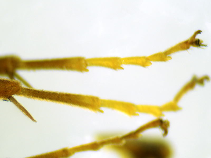 This was one of two similar sawflies observed flying around a Pedunculate Oak tree. The identification was complicated by different references taking different taxonomic positions - The RES key by Benson does not recognise Tenthredopsis scutellaris, Lacourt synonymises friesei with nassata but recognises scutellaris, while the British and Irish Sawflies website recognises all three as distinct. The genitalia appears to eliminate other species but as far as I can tell does not help differentiate between these three. Size appears to be relevant but the different references disagree, presumably in part due to their different taxonomic stances - this one had a forewing of 10.0mm which depending on which reference you're using could be good or bad for friesei! In the end I think three characters point to friesei: 1) the colouration of the thorax, 2) the middle segmemts of the hind tarsus are whitish (well, not really white but obviously paler orange than the rest of the tarsus and the rest of the legs) and 3) the keel along the midline of the eighth tergite only extends to about half way down the tergite.