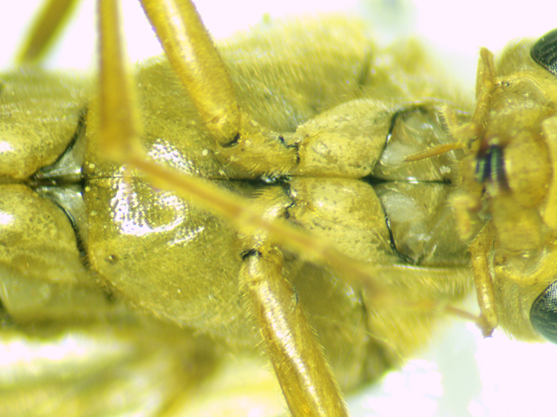male Tenthredopsis friesei showing wings, hind tarsi, thorax from side, thorax from below, clypeus, apical sternite, eighth tergite, penis valve projection only just visible without dissection, geintal capsule and penis valves, Wendling Beck Environment Project (Norfolk, UK), 4th June 2025