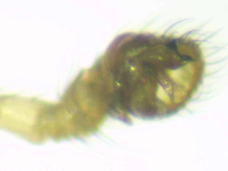 second male Oedothorax apicatus showing head from side and pedipalp, Wendling Beck Environment Project (Norfolk, UK), 25th-26th August 2025